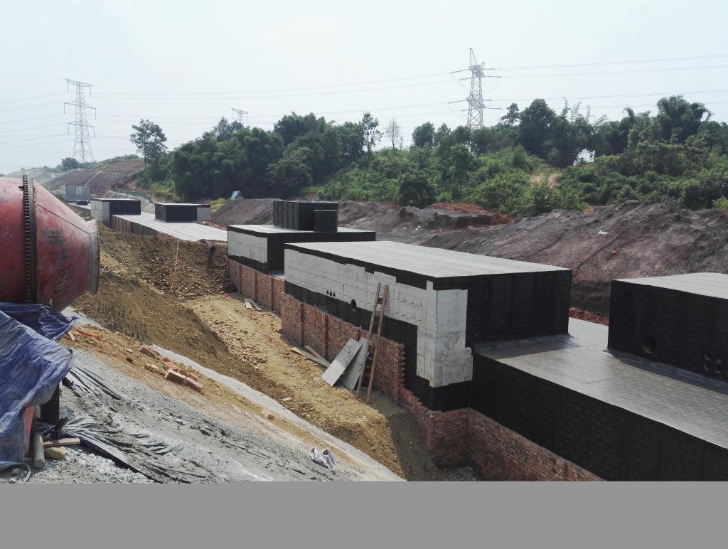 天府新區(qū)興隆湖旁興隆122路綜合管廊電力隧道防水工程是本公司2016年承包施工,此隧道工程采用明挖隧道,然后管廊外側(cè)采用防水卷材外防水,最后再回填土的方式施工,我公司在此工程種類了重要的管廊防水施工經(jīng)驗。