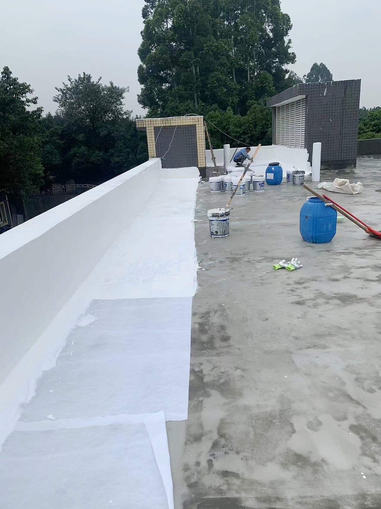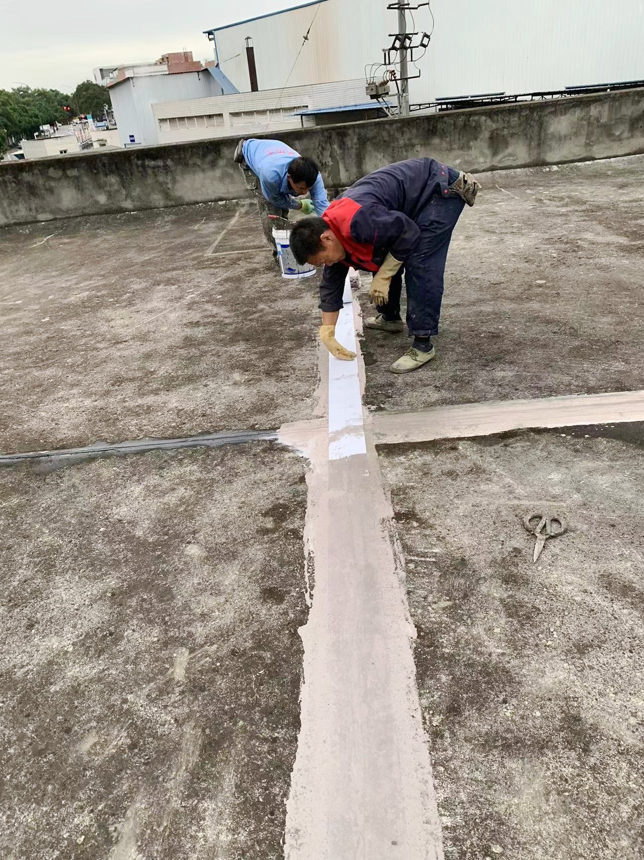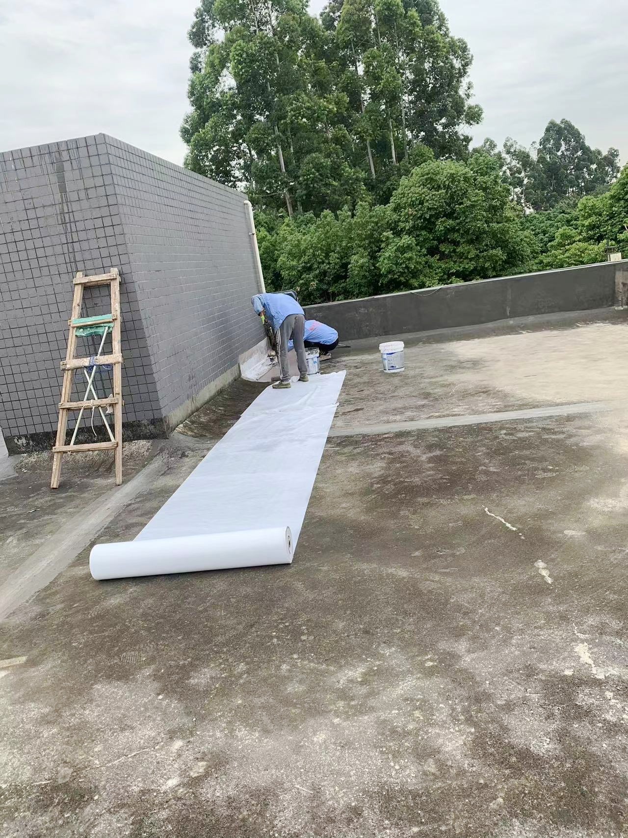 隨后,我們在整個屋面上滿滾涂刷Ⅰ型聚合物水泥防水涂料,以形成均勻的防水層。接著,又滿鋪貼縫織聚酯布,再次滿滾涂刷Ⅰ型聚合物水泥防水涂料。這種反復的涂刷和鋪設,使得防水層更加均勻緊密,有效地提高了屋頂的防水性能。