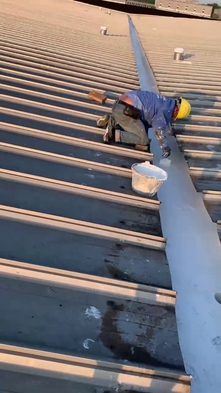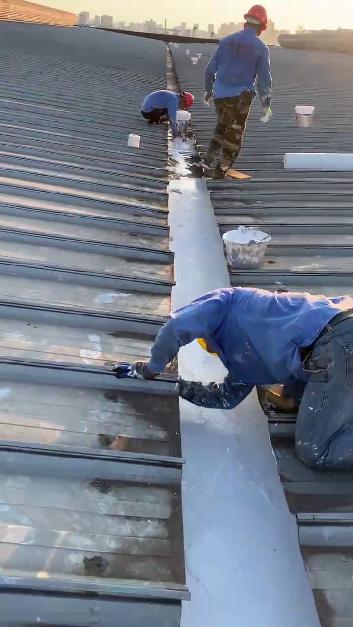 針對這一情況,成都蜀禹建筑防水工程有限責任公司迅速制定了科學合理的施工方案。他們首先對天溝內(nèi)部進行了徹底的清理,然后使用彩鋼板插入已爛掉的下水管內(nèi),滲入漏斗進行固定。接著,他們采用SYR金屬屋面專用防水涂料配合縫織聚酯布進行防水防腐補漏施工處理。此外,為解決銹蝕問題,施工團隊在天溝內(nèi)滿涂刷納米固銹劑進行基面固銹處理。待涂料干燥后,他們在天溝的底部及兩側(cè)面涂刷了SYR金屬屋面專用防水涂料并滿鋪貼專用縫織聚酯布,表面再涂刷SYR金屬面專用防水涂料。待所有涂料干燥后,他們又對表面進行了一次涂刷SYR金屬屋面專用防水涂料,使整個天溝得到了全面的保護。