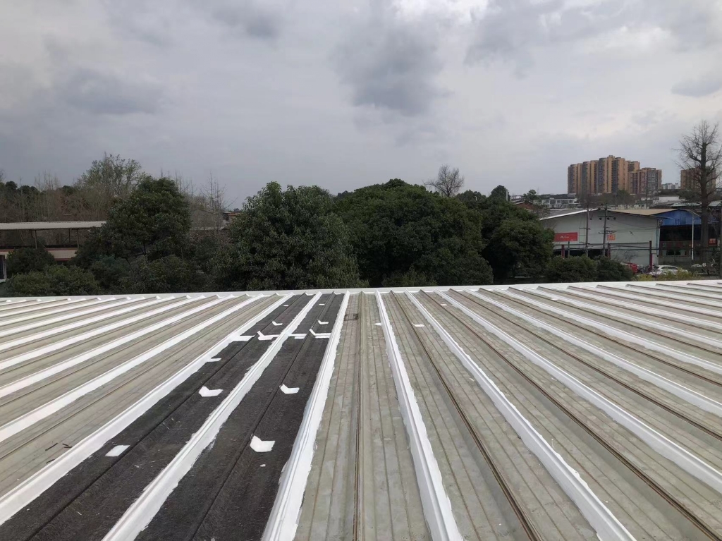 在天溝部位的處理上,成都蜀禹建筑防水工程有限責任公司同樣采用了SYR金屬屋面專用防水涂料進行滿涂刷。對于天溝內銹蝕嚴重的地方,公司首先采用彩鋼板進行修補,然后在生銹的地方涂刷免除銹納米固銹劑進行基面固銹處理。這一步驟不僅有效去除了銹蝕,還為后續的防水防腐處理奠定了堅實的基礎。