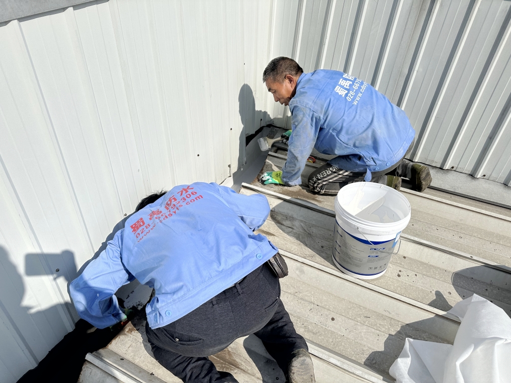 蜀禹防水公司接到項目后,立即組織技術(shù)團隊前往現(xiàn)場進行勘查,深入分析漏水原因。經(jīng)過仔細(xì)勘察,發(fā)現(xiàn)主要漏水點集中在彩鋼瓦的搭接縫、固定螺釘