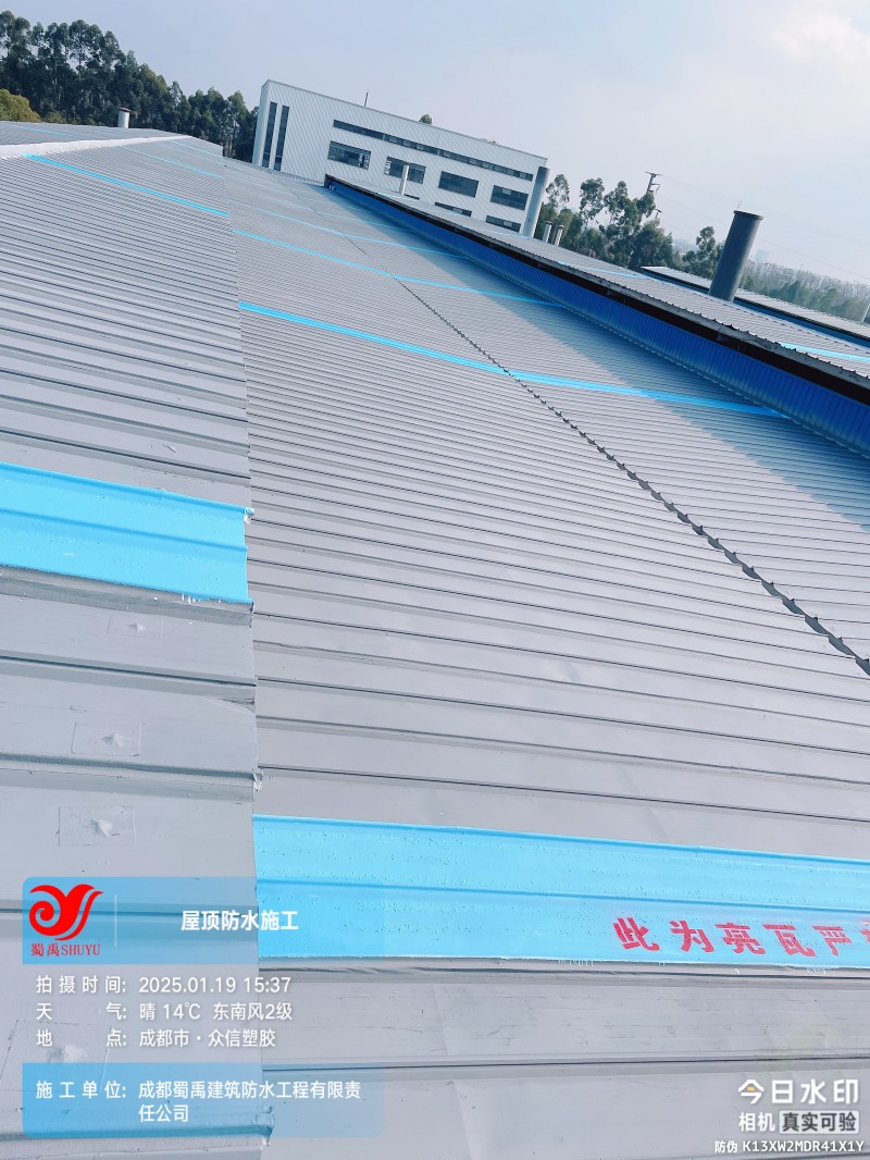 成都眾信塑膠 廠房鋼結構屋面防水補漏工程是成都蜀禹建筑防水工程有限責任公司在工業建筑防水領域的又一成功案例。我們始終堅持以客戶需求為導向,以專業技術為支撐,致力于為客戶提供高品質、可靠的防水解決方案。未來,我們將繼續秉承 “質量更優、服務至上” 的理念,不斷提升技術水平和服務質量,為更多客戶解決屋面防水難題,守護工業建筑的安全與穩定。