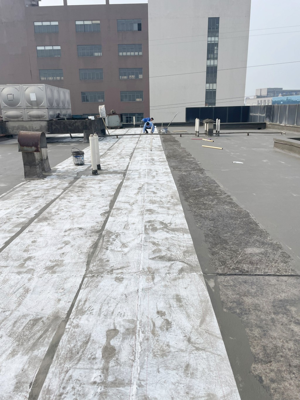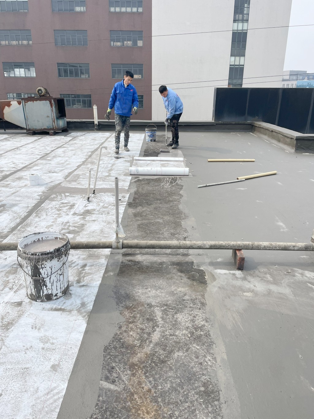 滿做聚合物防水涂料:在修補好的屋頂表面滿做Ⅰ型聚合物防水涂料,該涂料具有良好的粘結(jié)性和防水性能,能夠有效滲透到基層孔隙中,形成一道初步的防水屏障。