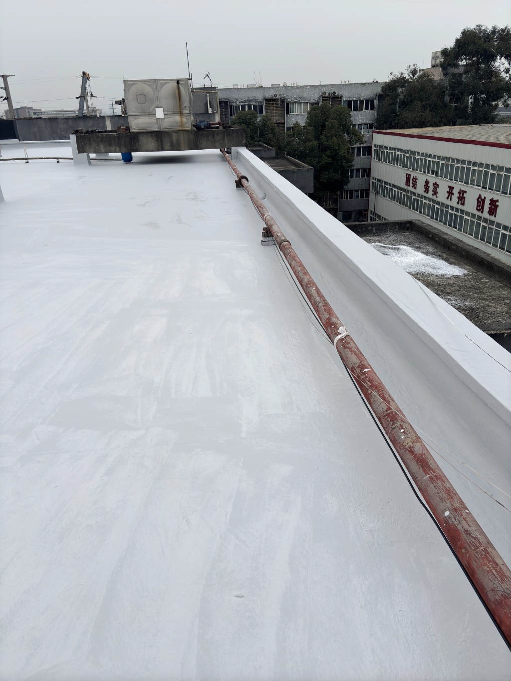 施工前,宿舍樓混凝土屋頂因長期受雨水侵蝕、日曬雨淋,加上部分區(qū)域出現(xiàn)破損,屋頂漏水問題頻發(fā)。