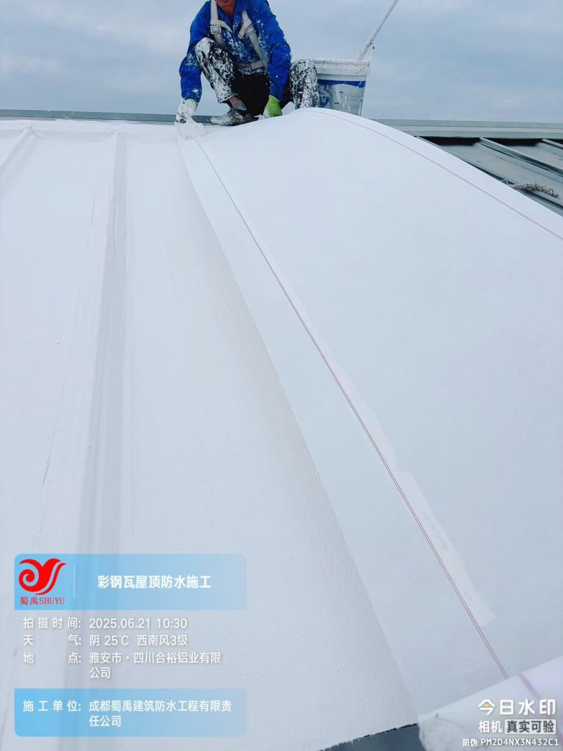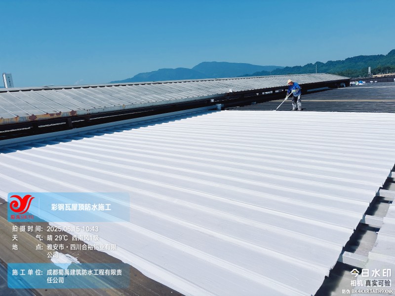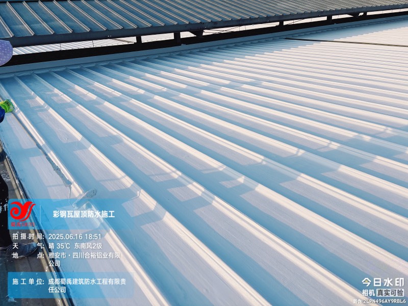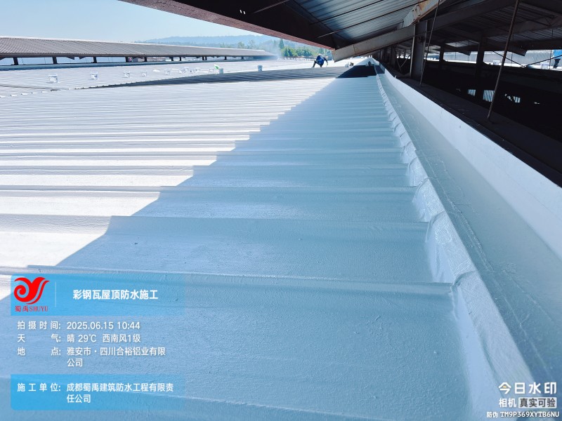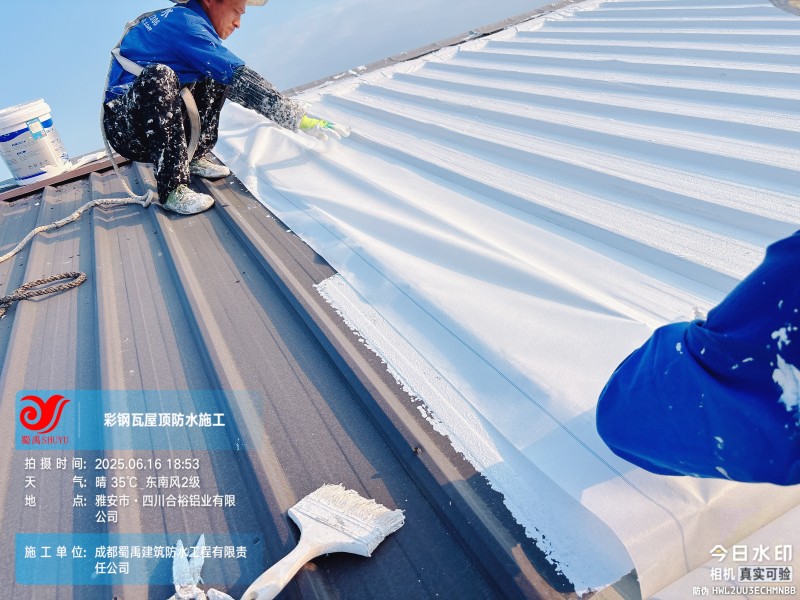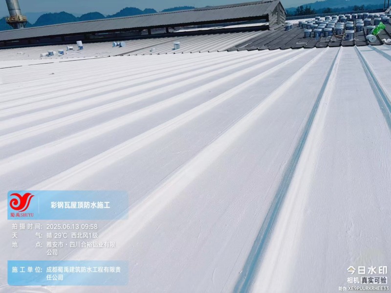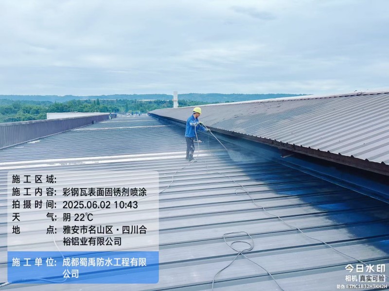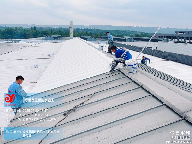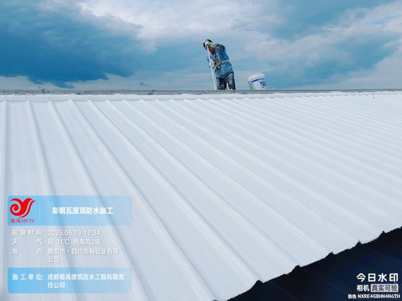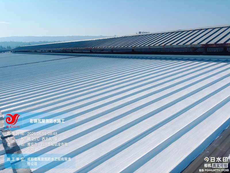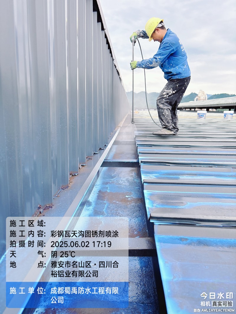 此次四川合裕鋁業 2 號鋼結構廠房屋頂防水補漏防腐翻新工程,蜀禹防水團隊嚴格按照施工方案與技術標準開展作業,從基面處理到涂層涂刷,每一個環節都做到精細化把控。通過采用 SYR 金屬屋面無縫防水系統,結合科學的施工流程,成功解決了廠房屋面的漏水問題,同時為彩鋼瓦屋面提供了長期的防腐保護。