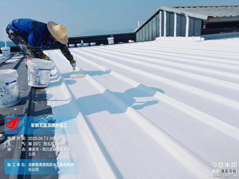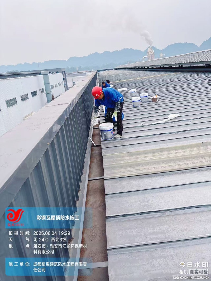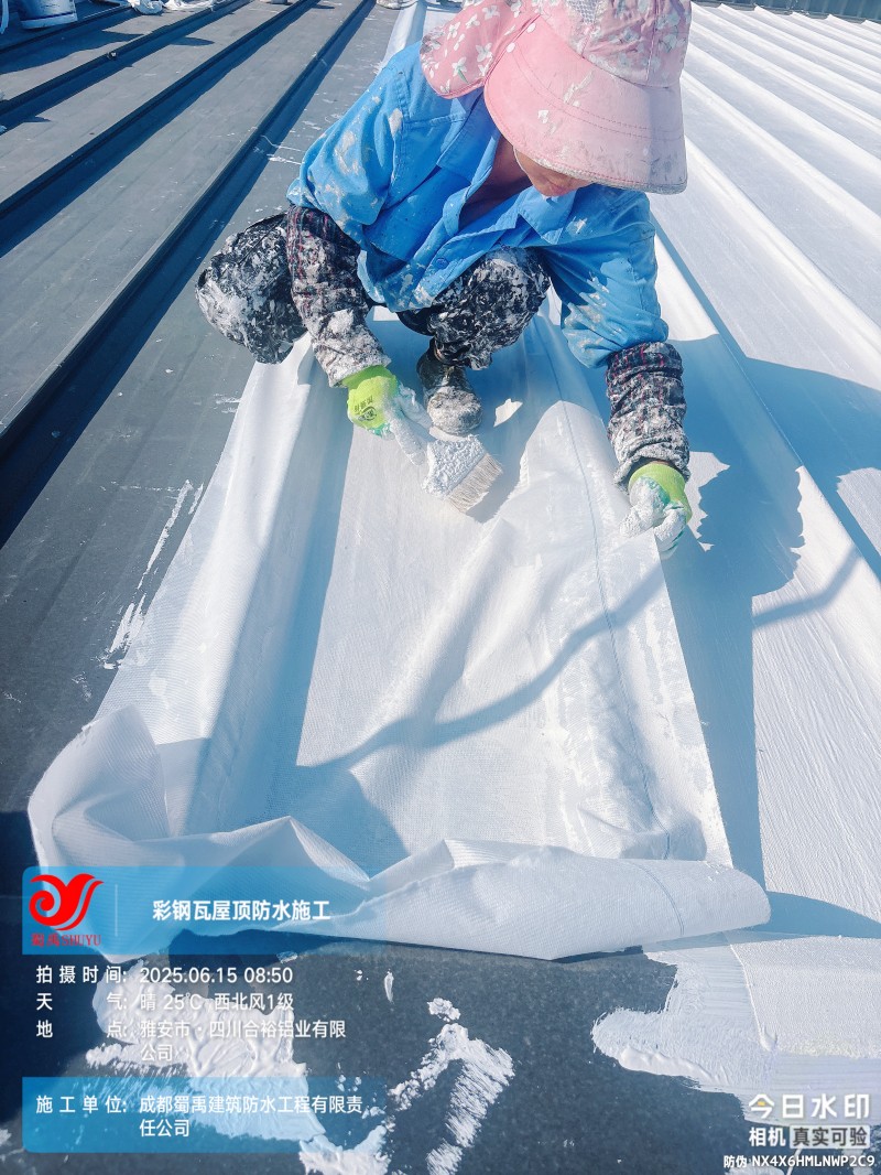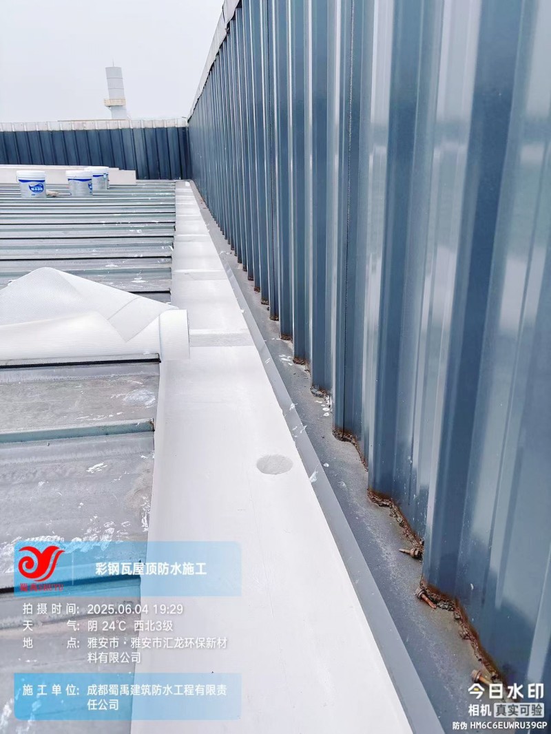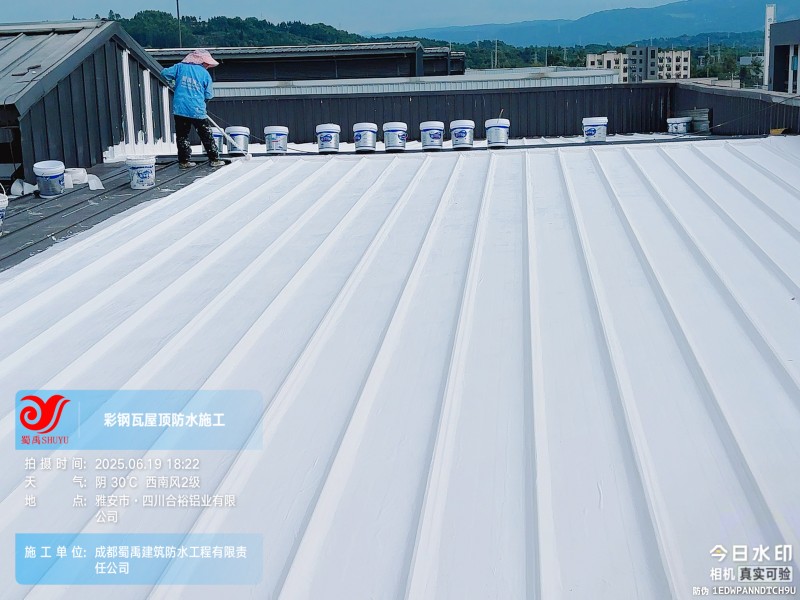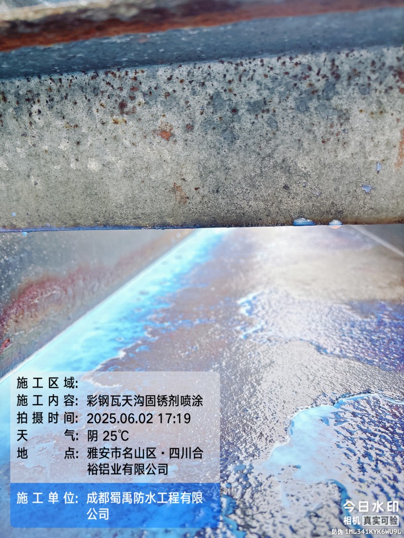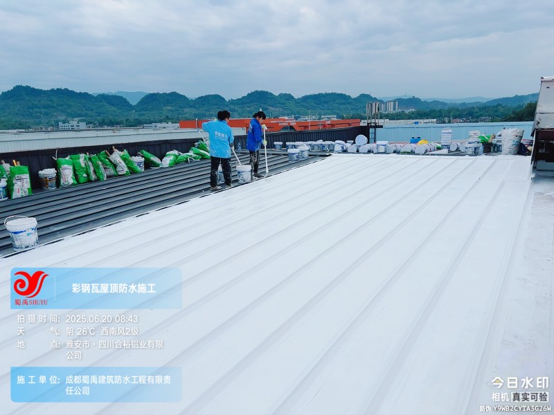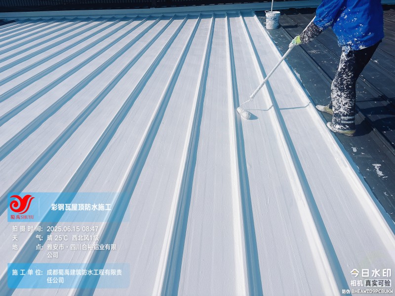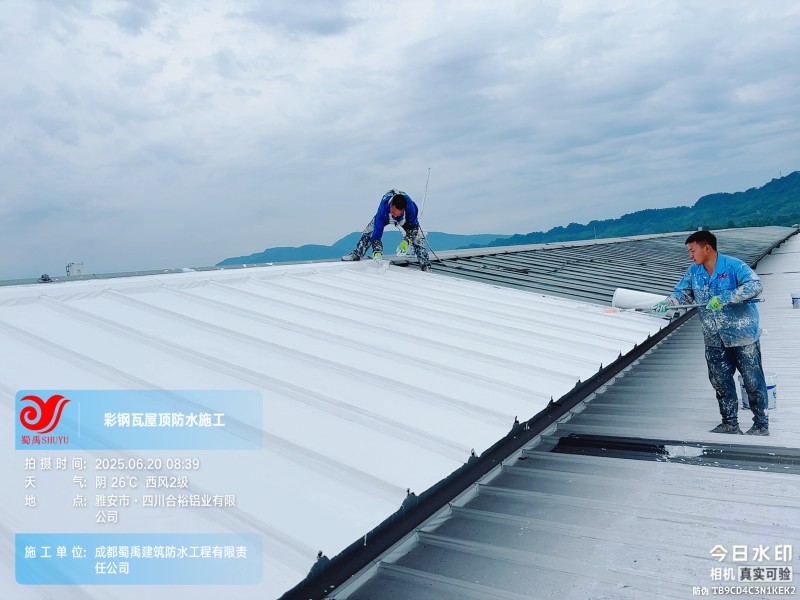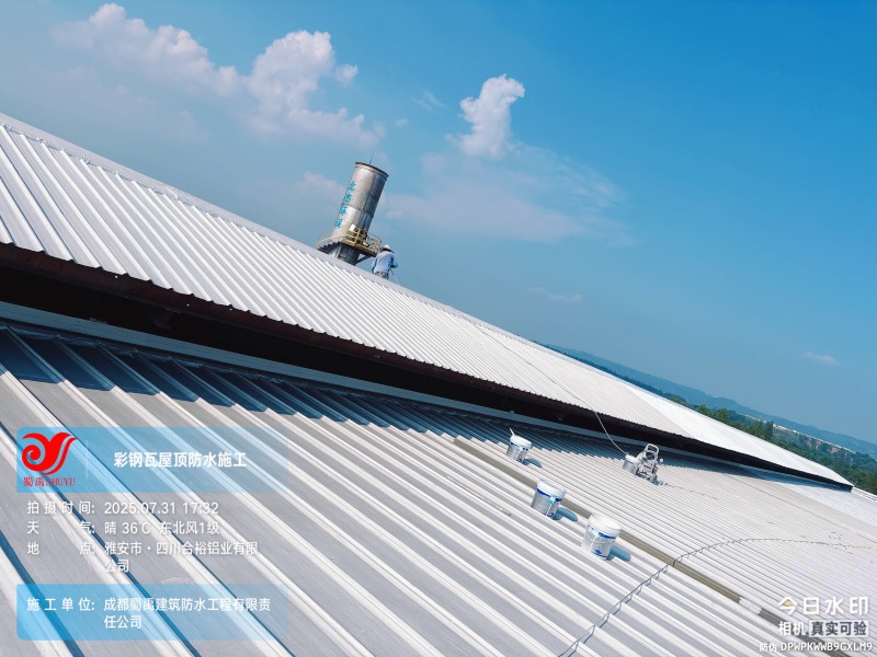 此次四川合裕鋁業 2 號鋼結構廠房屋頂防水補漏防腐翻新工程,蜀禹防水團隊嚴格按照施工方案與技術標準開展作業,從基面處理到涂層涂刷,每一個環節都做到精細化把控。通過采用 SYR 金屬屋面無縫防水系統,結合科學的施工流程,成功解決了廠房屋面的漏水問題,同時為彩鋼瓦屋面提供了長期的防腐保護。