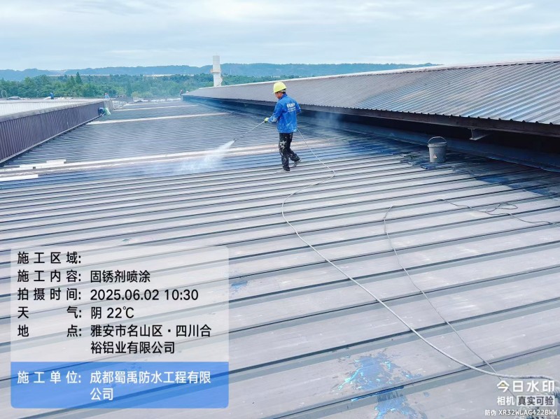 在工業生產場景中,鋼結構廠房屋頂的防水防腐性能直接關系到廠區生產活動的穩定開展。近期,成都蜀禹建筑防水工程有限責任公司(以下簡稱 “蜀禹防水”)成功承接并完成了四川省雅安市名山區永興鎮永興四路四川合裕鋁業有限公司廠區內 2 號鋼結構廠房屋頂防水補漏防腐翻新工程,憑借專業的技術方案與細致的施工服務,為該廠區解決了長期困擾的屋面漏水問題。