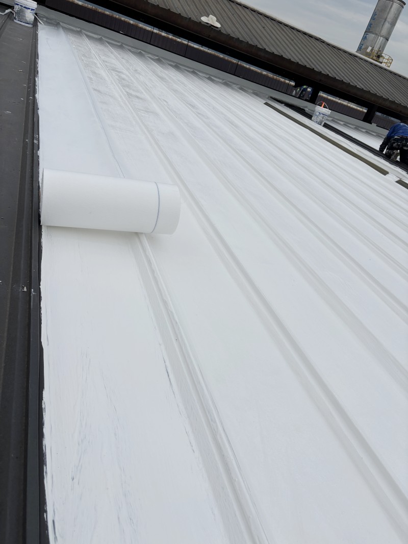 1. 第一遍防水涂料涂刷:待納米固銹劑干燥后,在彩鋼瓦表面滿涂第一遍 SYR 金屬屋面專用防水涂料,涂刷過程中控制涂刷厚度均勻,確保涂層覆蓋所有區域,無遺漏、無氣泡;