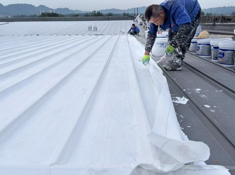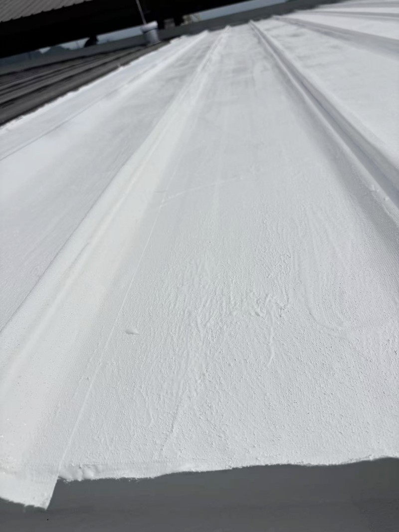1. 第二遍防水涂料涂刷:縫織聚酯布鋪貼完成后,在其表面滿涂刷第二遍 SYR 金屬屋面專用防水涂料,使防水涂料充分滲透聚酯布纖維,進一步加強防水涂層的整體性;