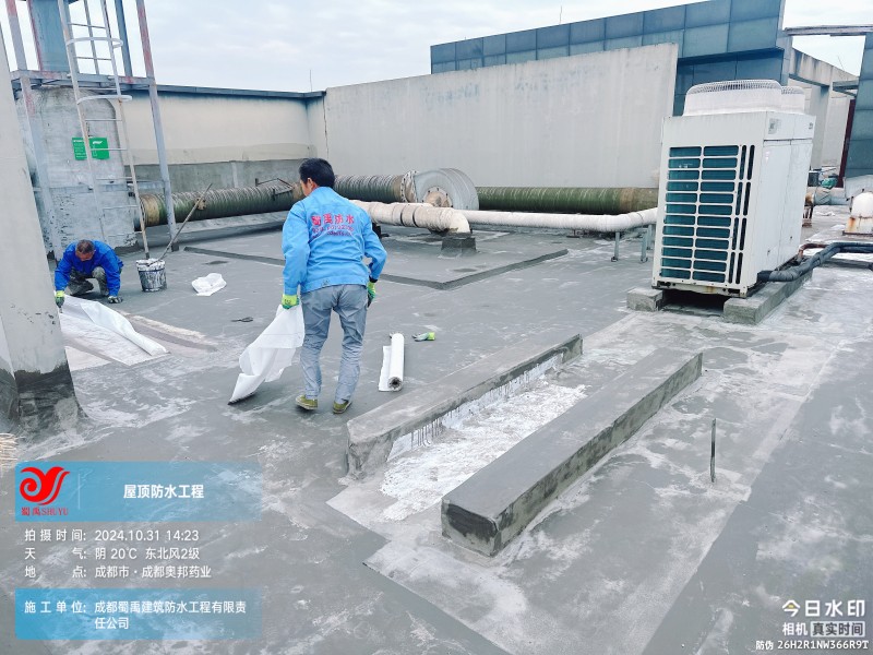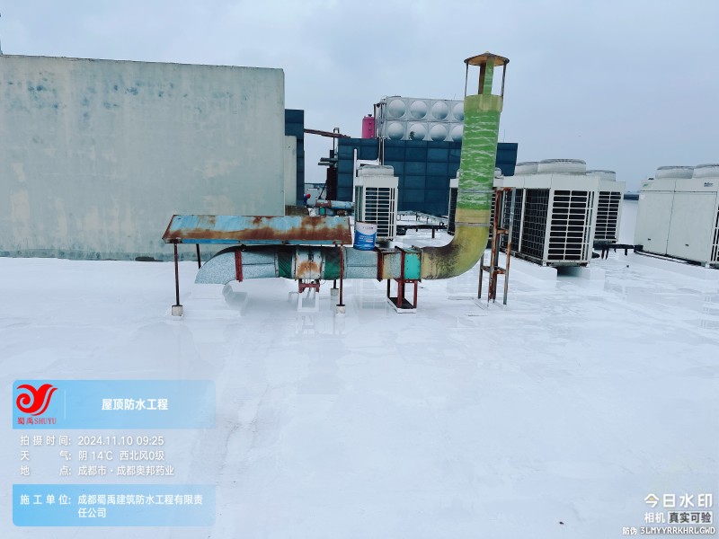 成都奧邦藥業(yè)有限公司邛崍生產(chǎn)基地,作為醫(yī)藥生產(chǎn)核心場所,其質(zhì)檢樓與固體車間的屋面防水性能直接關系到生產(chǎn)環(huán)境穩(wěn)定性與設備安全。因屋面長期承載各類檢測、生產(chǎn)輔助設備,傳統(tǒng)防水卷材施工難以適配復雜布局,此前面臨 “施工易失誤、防水效果難保障” 的困境。成都蜀禹建筑防水工程有限責任公司針對這一特殊場景,定制采用 SYR 外露型無縫防水系統(tǒng),成功完成屋面防水維修,為藥業(yè)生產(chǎn)基地筑牢防水屏障。