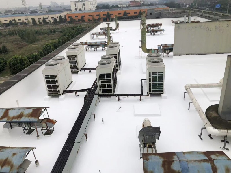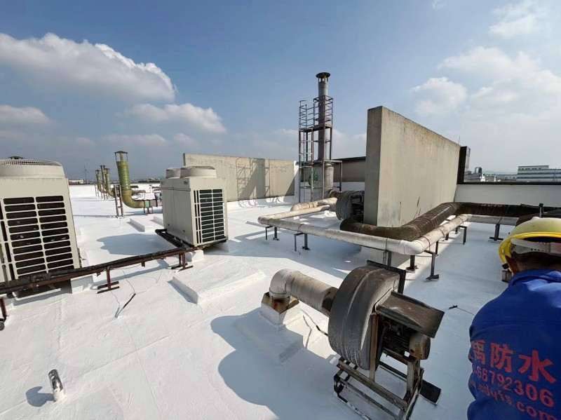設備密集,施工空間受限:屋面分布大量檢測儀器外機、通風設備及管線,設備間距窄、布局復雜,傳統(tǒng)防水卷材需大面積鋪貼、裁剪,易因設備遮擋導致卷材拼接不嚴密,留下漏水隱患;